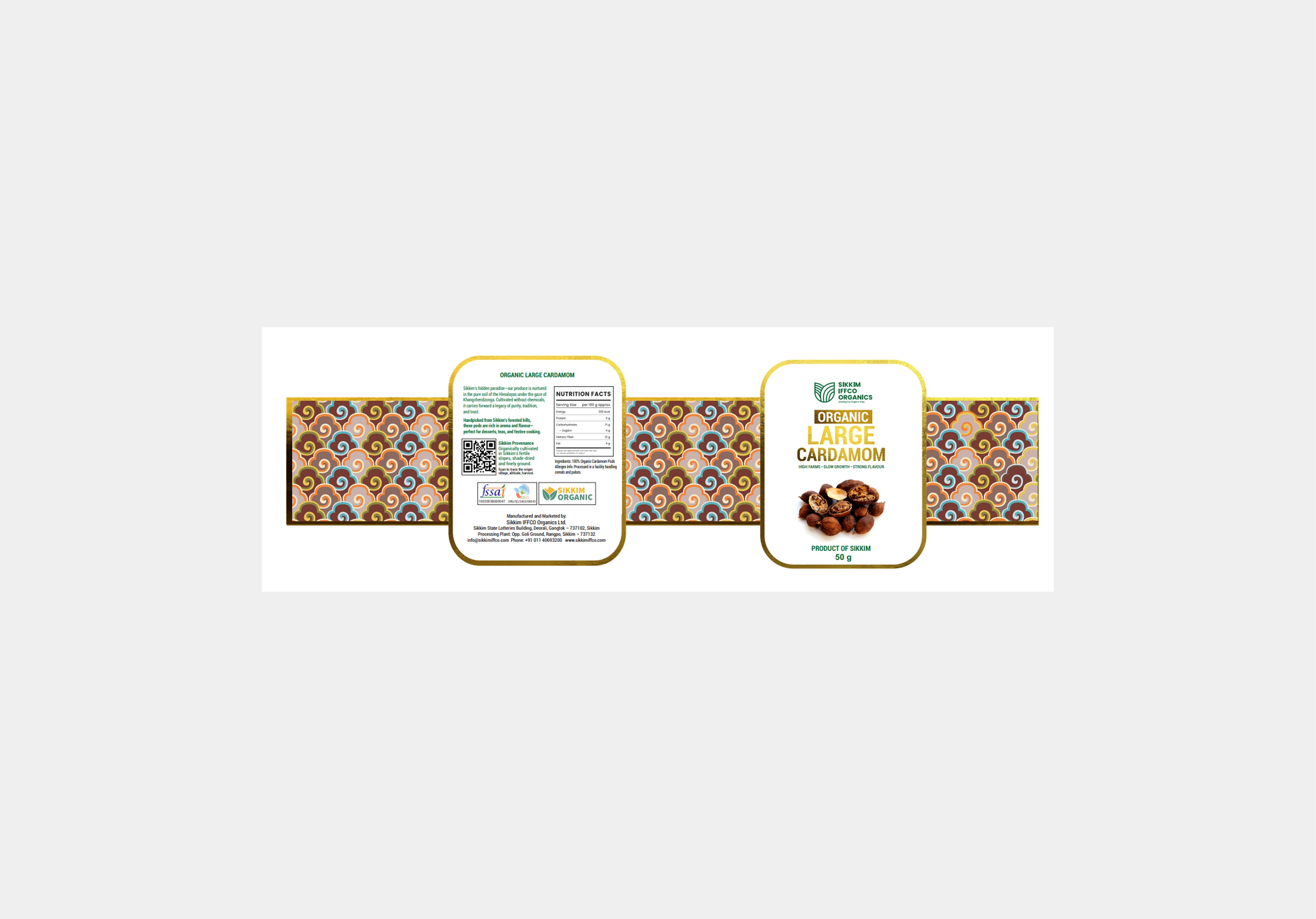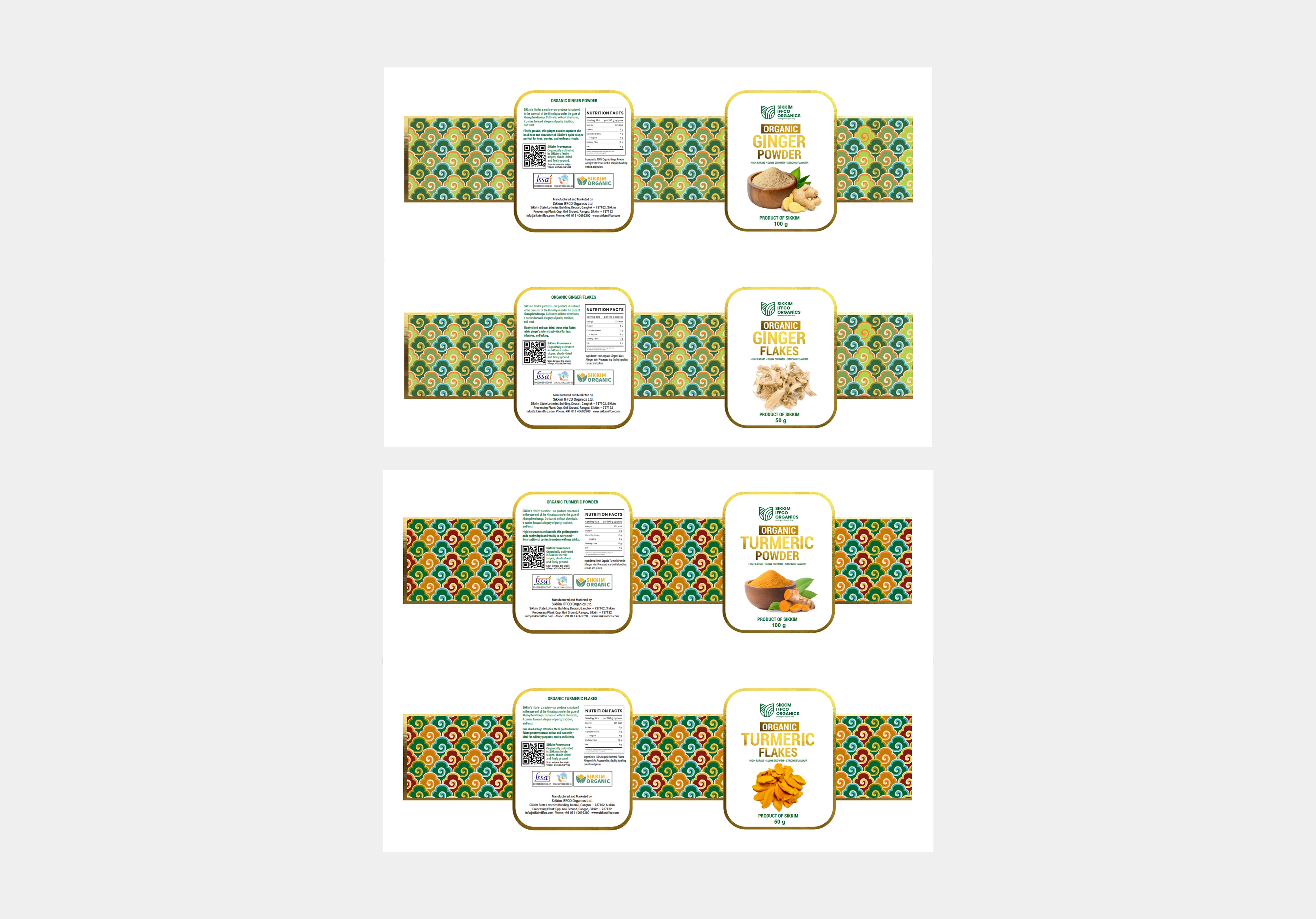 IFFCO Sikkim Organics is a landmark joint venture between the Government of Sikkim and IFFCO, dedicated to bringing the bounty of India’s first organic state to the world. Sourced from farm-fresh produce grown in the shadows of Mount Khangchendzonga, the range includes Turmeric (powder and flakes), Ginger (powder and flakes), Buckwheat flour, and Whole Cardamom. Our role at Albatross was to revitalize their packaging to reflect this unparalleled Himalayan provenance.